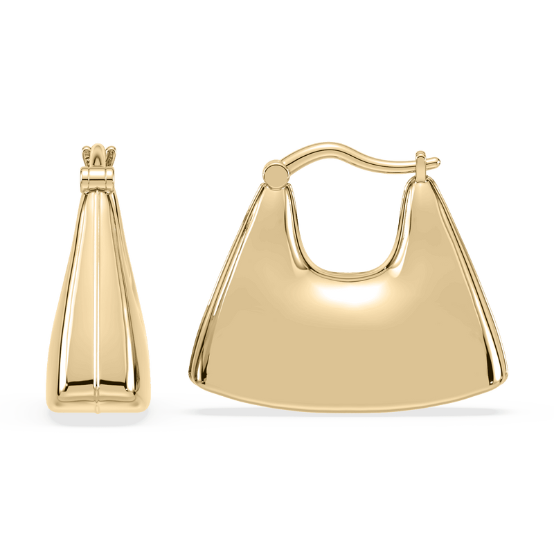 Crafted meticulously from conflict free 14K yellow gold, our Clutch Hoop is more than just a piece of jewelry; it's a statement of sophistication. Inspired by the timeless allure of a handbag, this hoop embodies the essence of chic femininity with its distinct shape reminiscent of a stylish clutch.