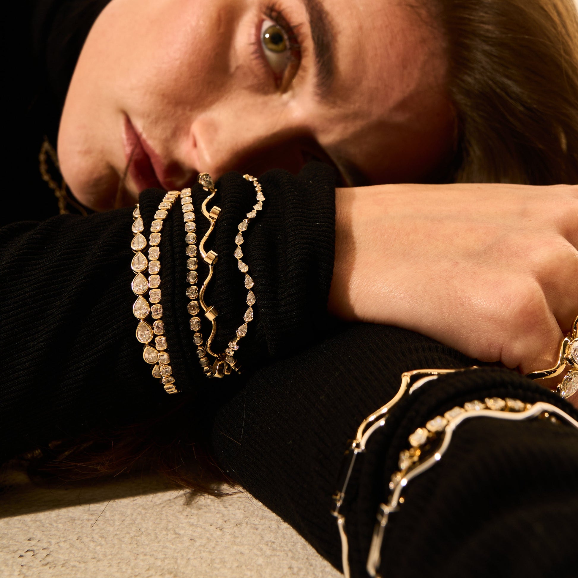 A classic tennis braceletβ€”but SETTE’d. The Coquette Lab Diamond Tennis Bracelet reinvents tradition with a soft squiggle of back-to-back pear-shaped lab diamonds, each set in a sleek half-bezel. Sculptural and high-shine, it wraps the wrist in a continuous curve of light.
