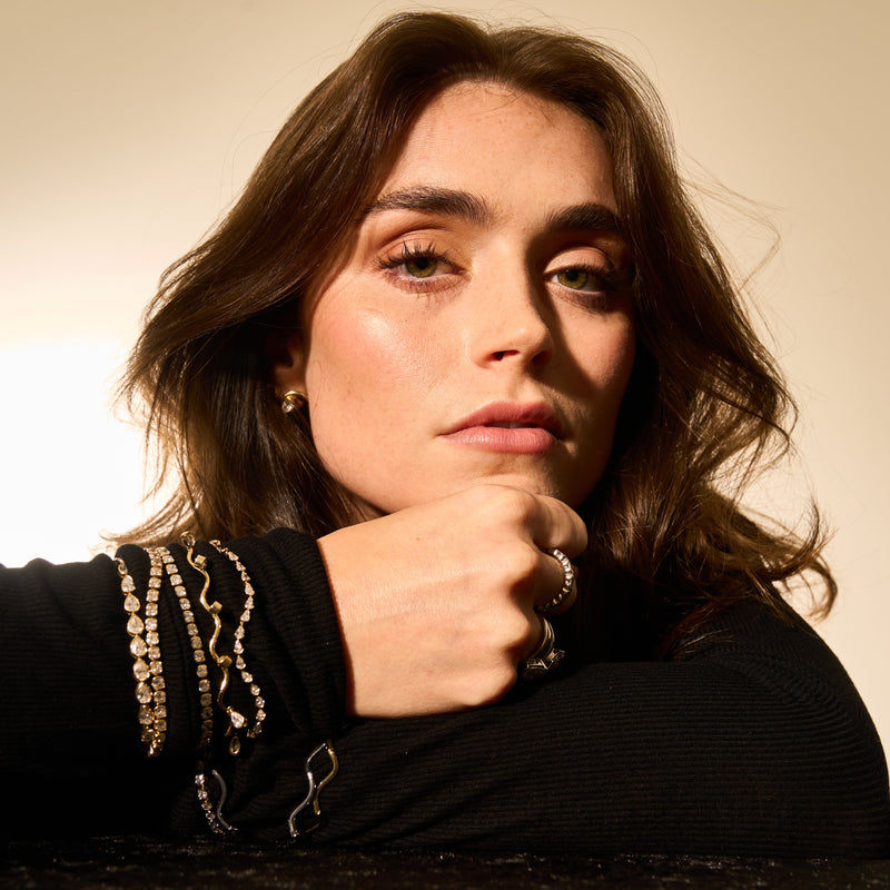 To achieve the wave effect, some links are fixed in placeβ€”giving this piece a more structured, contoured fit compared to traditional fluid tennis bracelets. It holds its shape like a design object, which makes it perfect for stacking or styling solo.