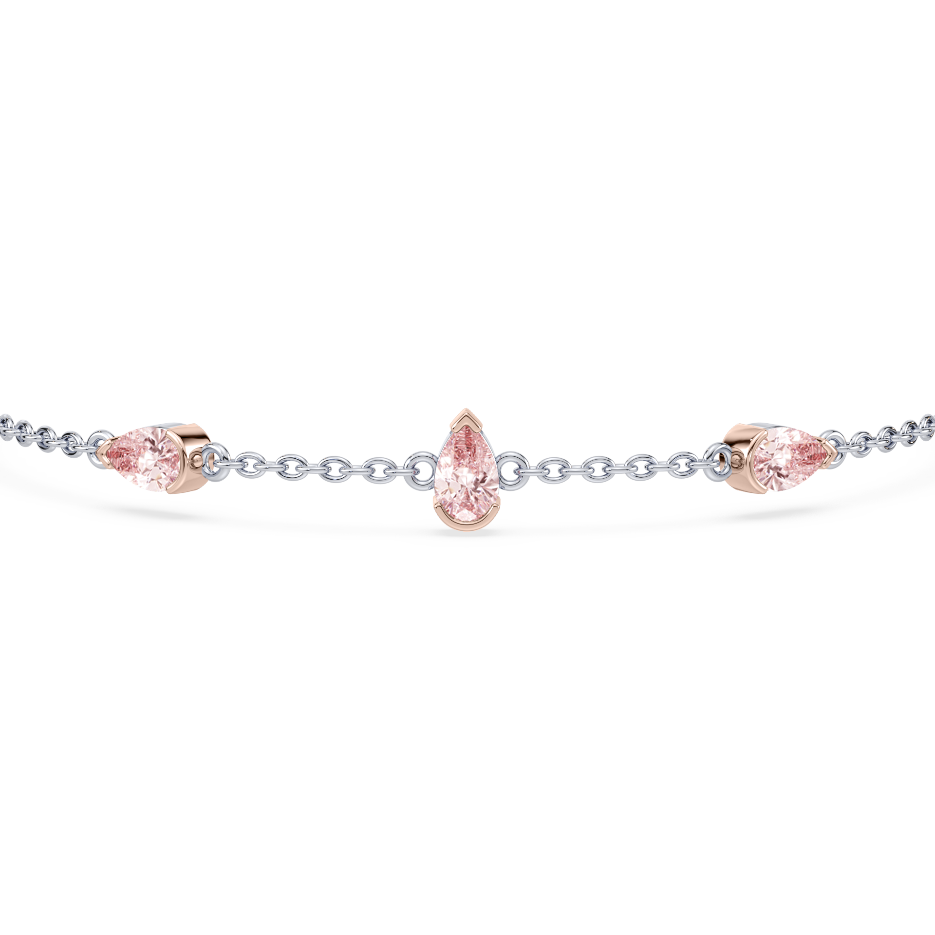 The Coquette Station Bracelet balances repetition and restraint. Three pink pear-shaped lab-grown diamonds are evenly spaced along a fine chain, each set in a half-bezel for a look that feels architectural. Designed to move with you and adjust easily at the wrist, it’s a piece that integrates effortlessly into daily wear while still holding its own.