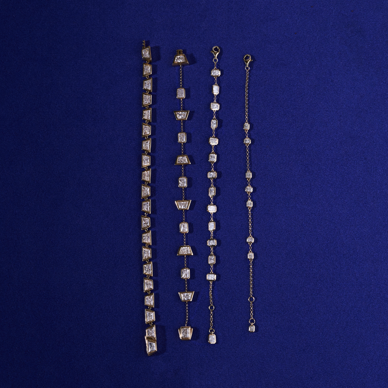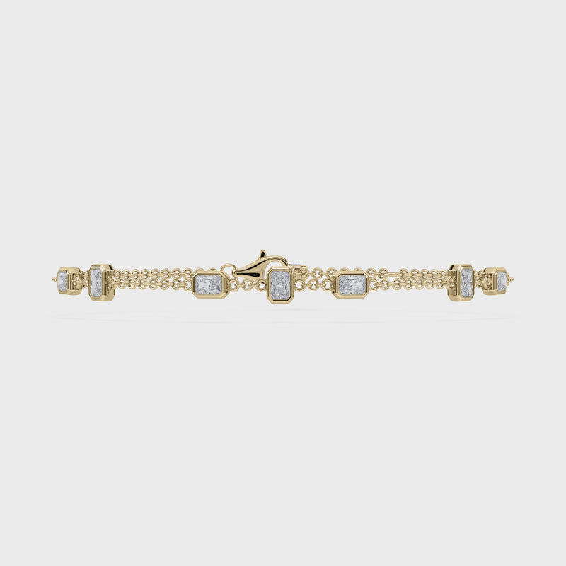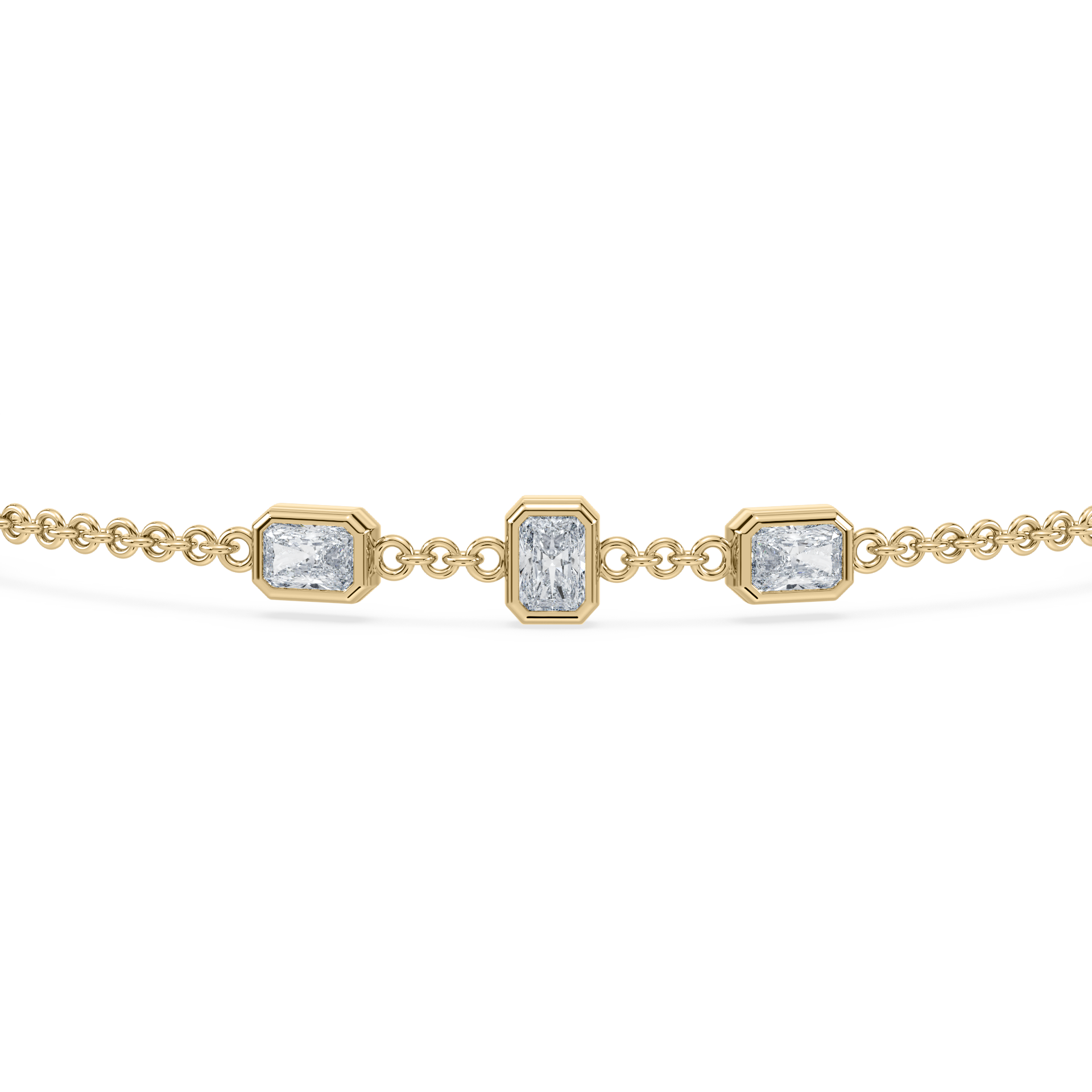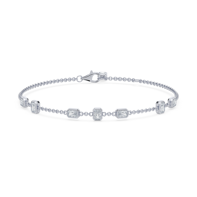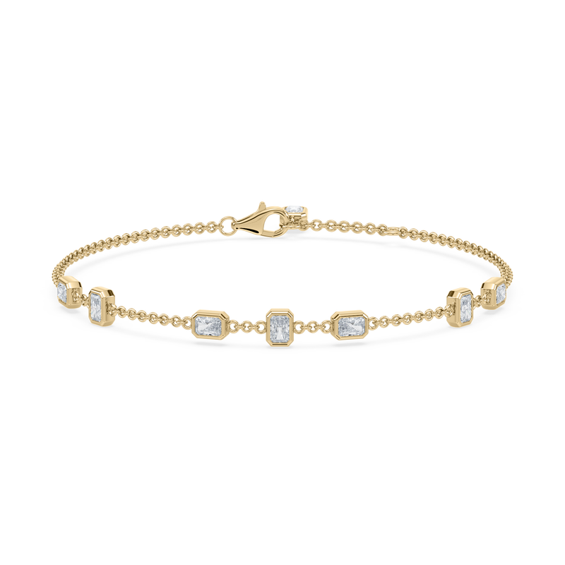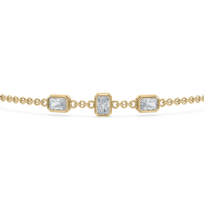 The Deco Fine Bracelet reimagines a jewelry essential with geometric precision and quiet strength. Featuring radiant-cut lab-grown diamonds set in full bezels along a delicate rolo chain, it offers just the right balance of structure and fluidity. Designed to move with you, it’s understated luxury made to be worn every day.